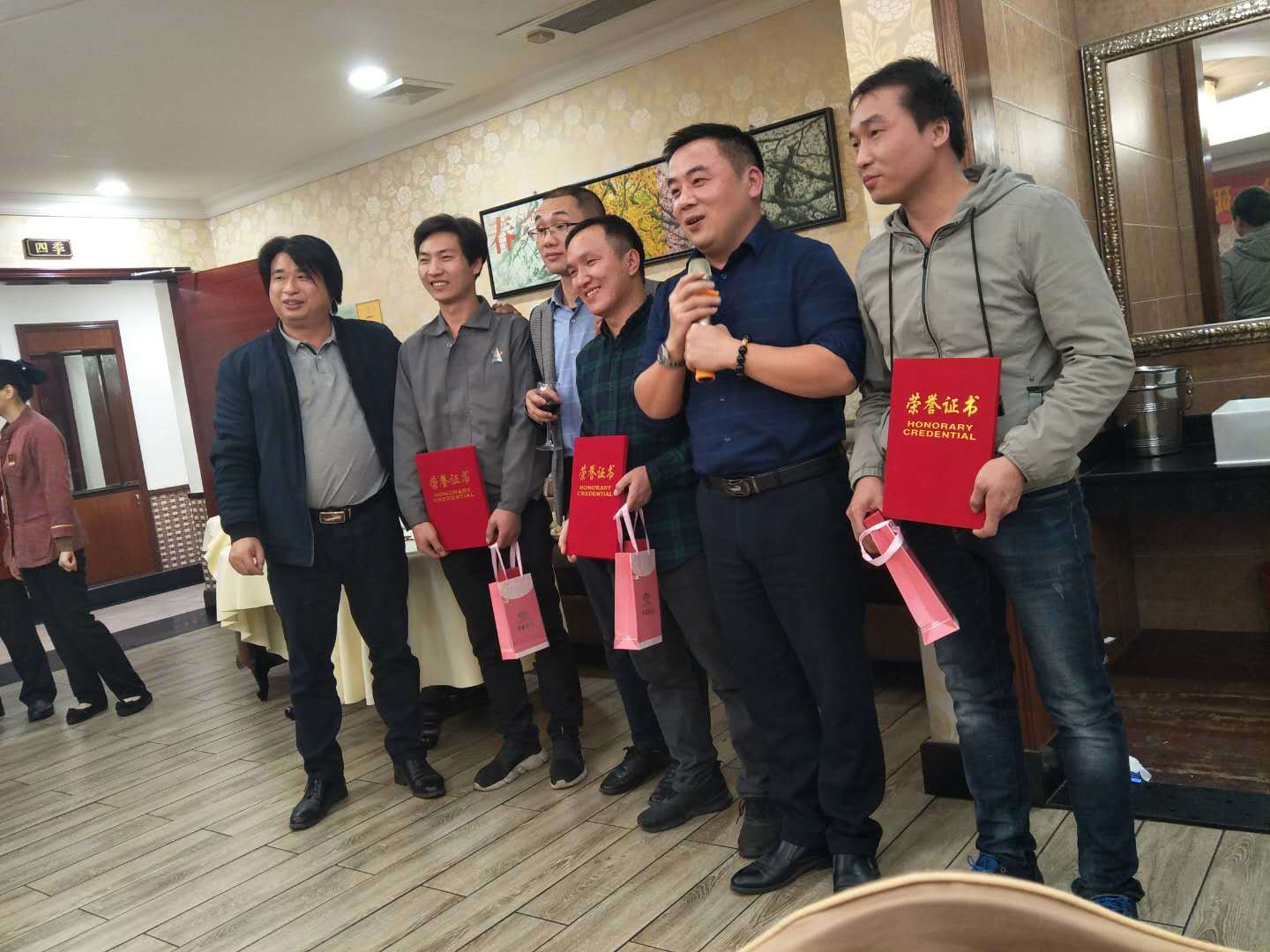 、鄭總一起為研發(fā)部和生產(chǎn)部幾名做出了突出貢獻(xiàn)的員工頒發(fā)了榮譽(yù)證書!